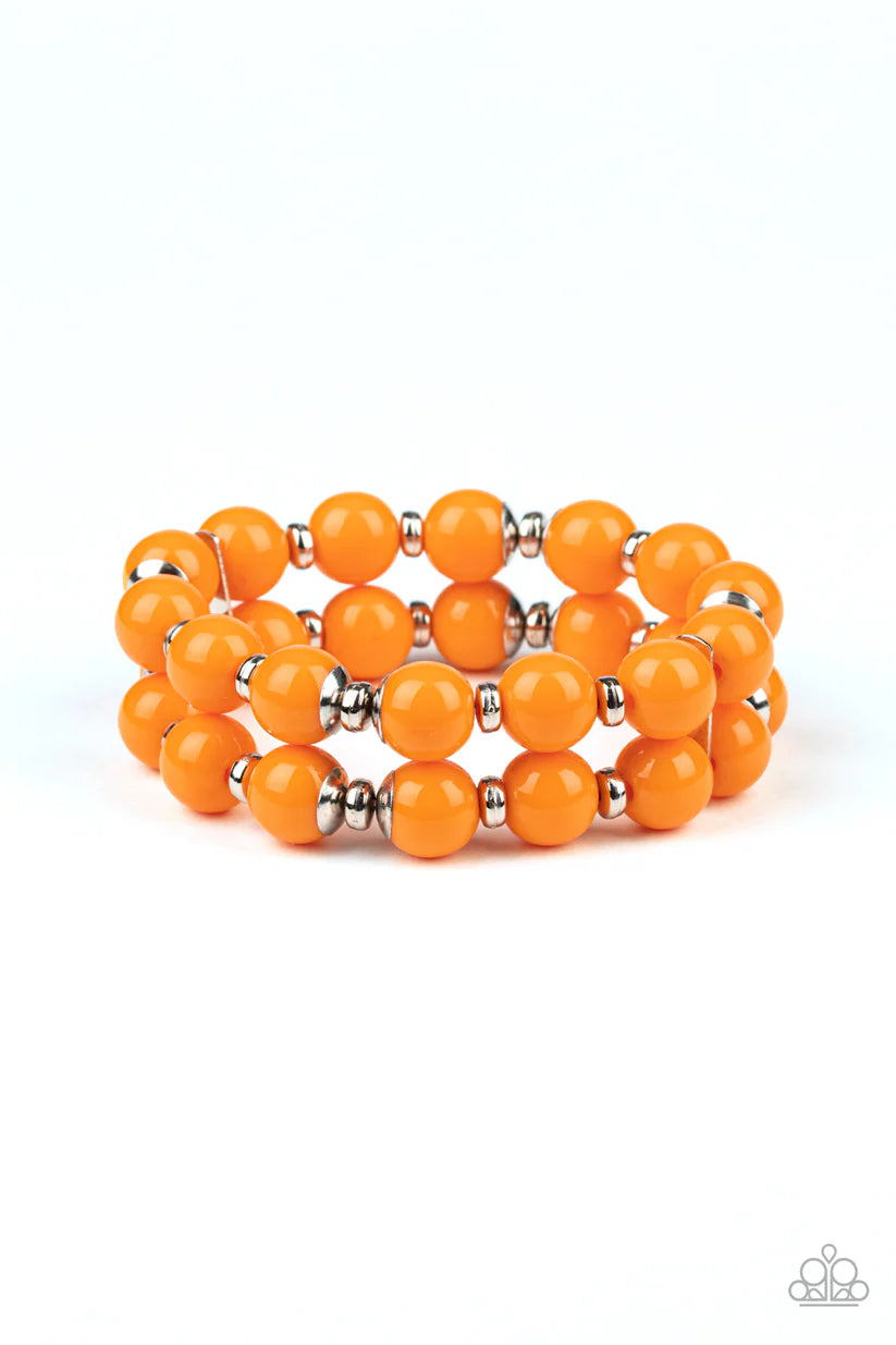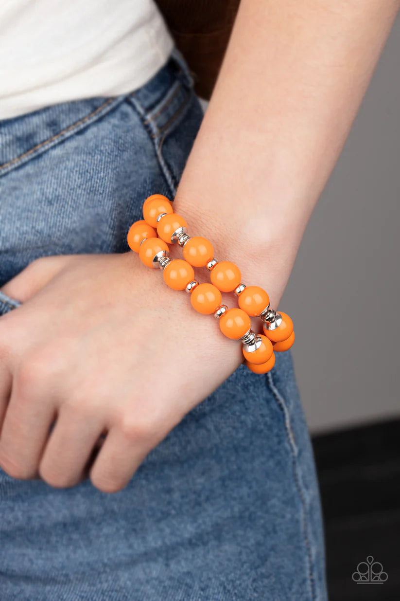 onnected together by two dainty silver fittings, a bubbly collection of Saffron beads and shiny silver accents are threaded along two stretchy bands around the wrist for a bold pop of color.