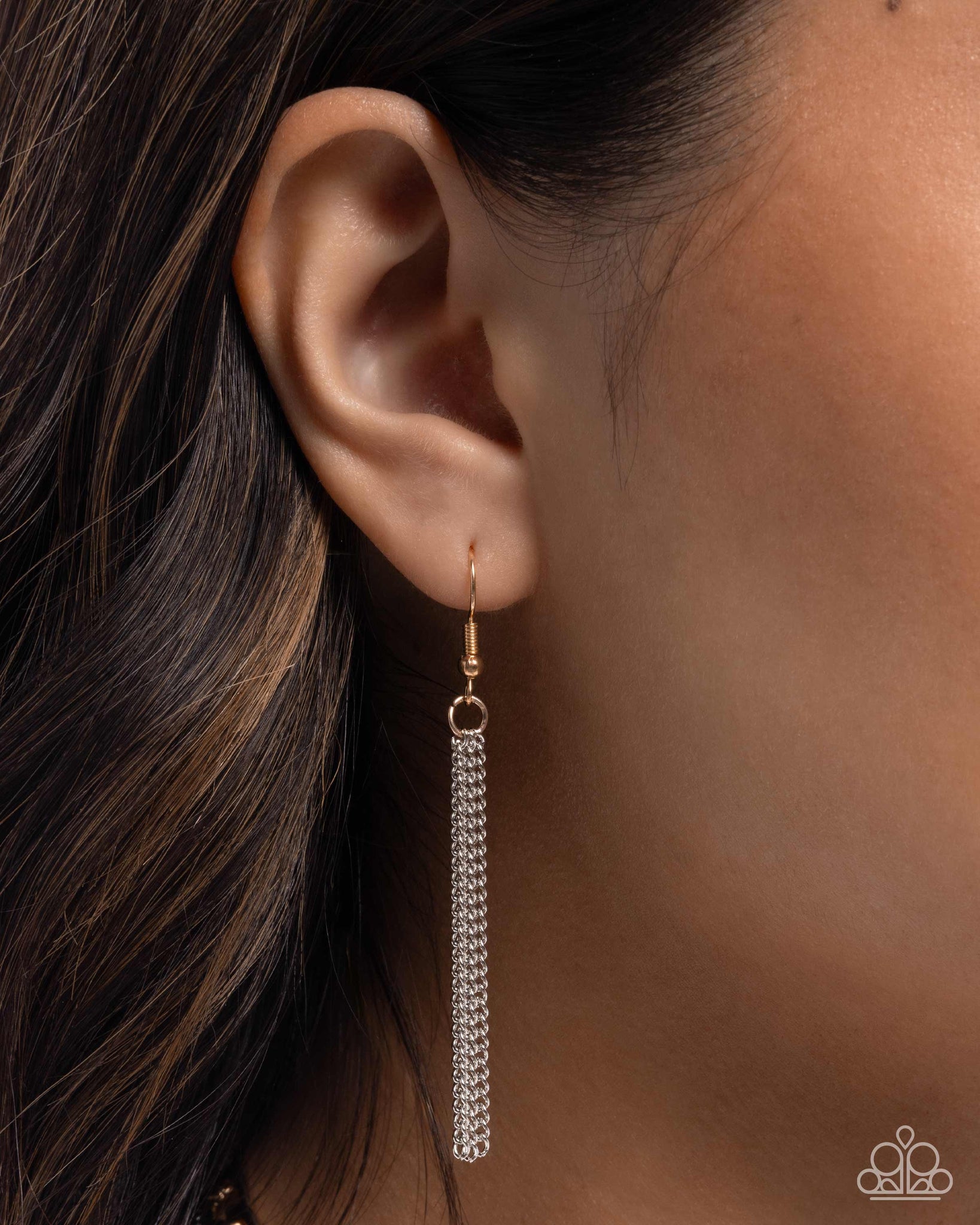A duo of contrasting chains, featuring a bold gold curb chain and a delicate silver chain, layers along the neckline to create a striking mixed-metal design. The combination of textures and tones adds depth and dimension to the piece. Features an adjustable clasp closure.