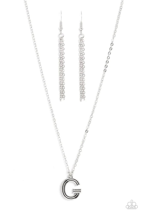 Etched in linear texture, a silver letter "G" hovers below the collar from a dainty silver chain, for a sentimentally simple design. Features an adjustable clasp closure.