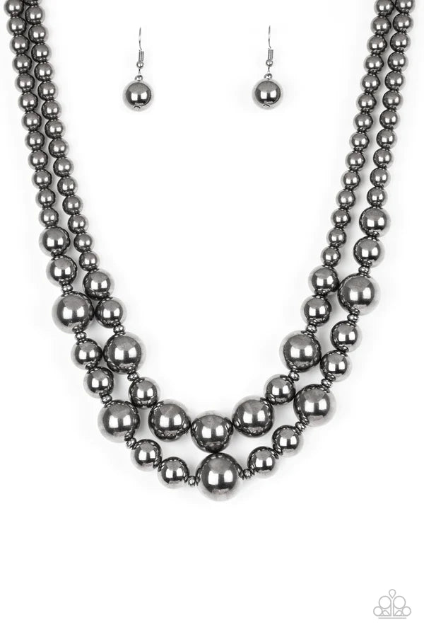 Gradually increasing in size near the center, strands of glistening gunmetal beads are threaded along invisible wires below the collar for a daring look. Features an adjustable clasp closure.