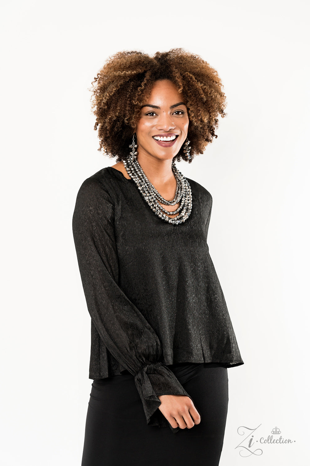 Dipped in a metallic shimmer, a collision of a faceted hematite and crystal-like beading drapes across the chest for a spellbinding look. Held together by two silver fittings, the strands gradually increase in size as they trickle down the chest in a fearless finish. Features an adjustable clasp closure.