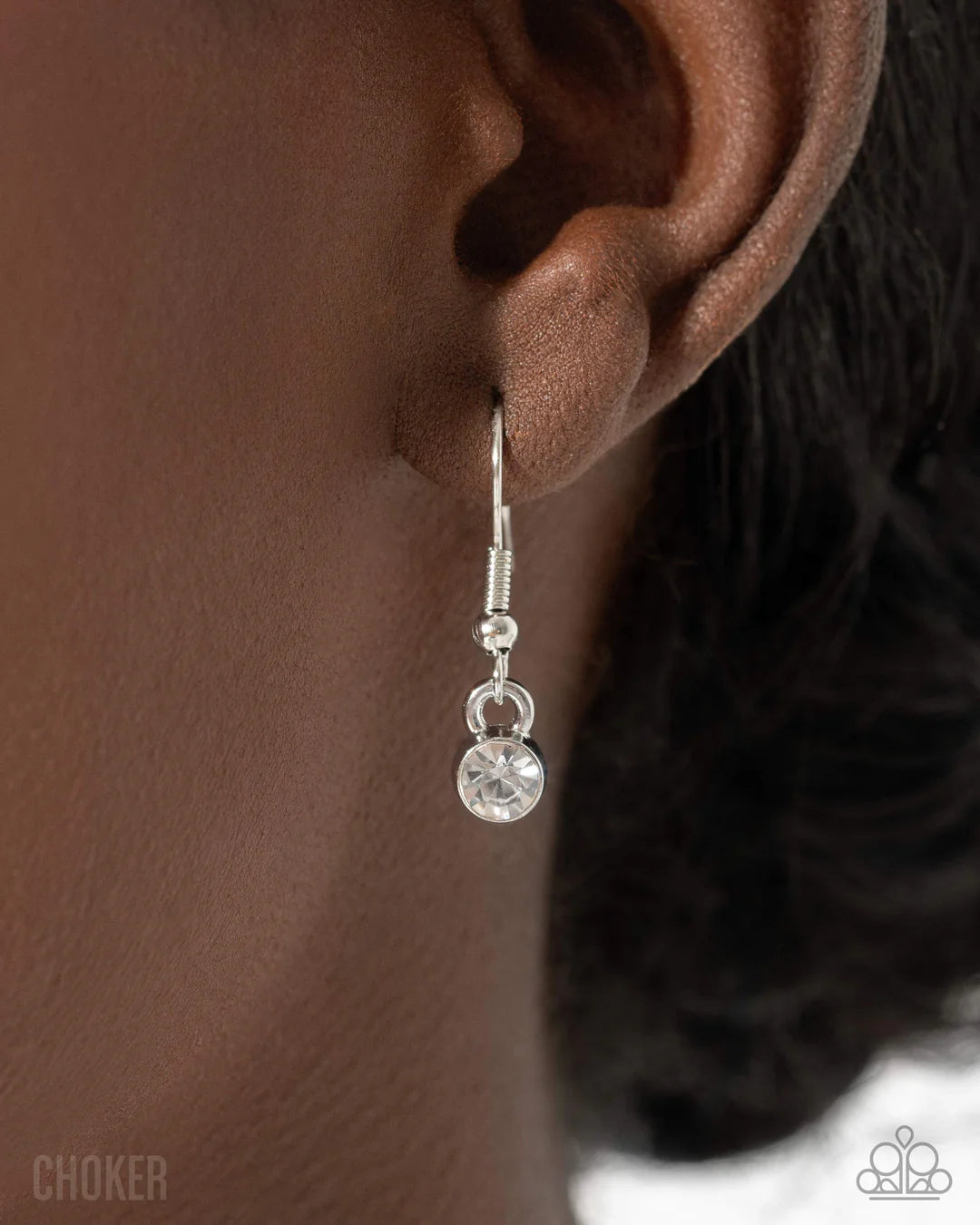 Encased in sleek white rhinestone-dusted silver frames, faceted round multicolored gems shimmer below the neckline from a glistening silver chain for a colorfully chic look. Features an adjustable clasp closure. Sold as one individual choker necklace.