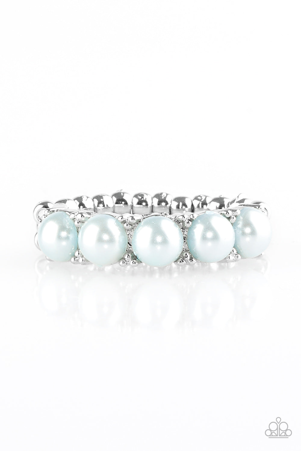 Bubbly blue pearls are encrusted along a dainty silver band for a whimsical look. Features a dainty stretchy band for a flexible fit.