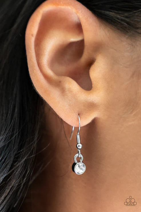 Flat silver chains stream out from the bottom of two overlapping white rhinestone encrusted frames, creating a timelessly twinkling pendant at the bottom of a lengthened silver snake chain. Features an adjustable clasp closure.