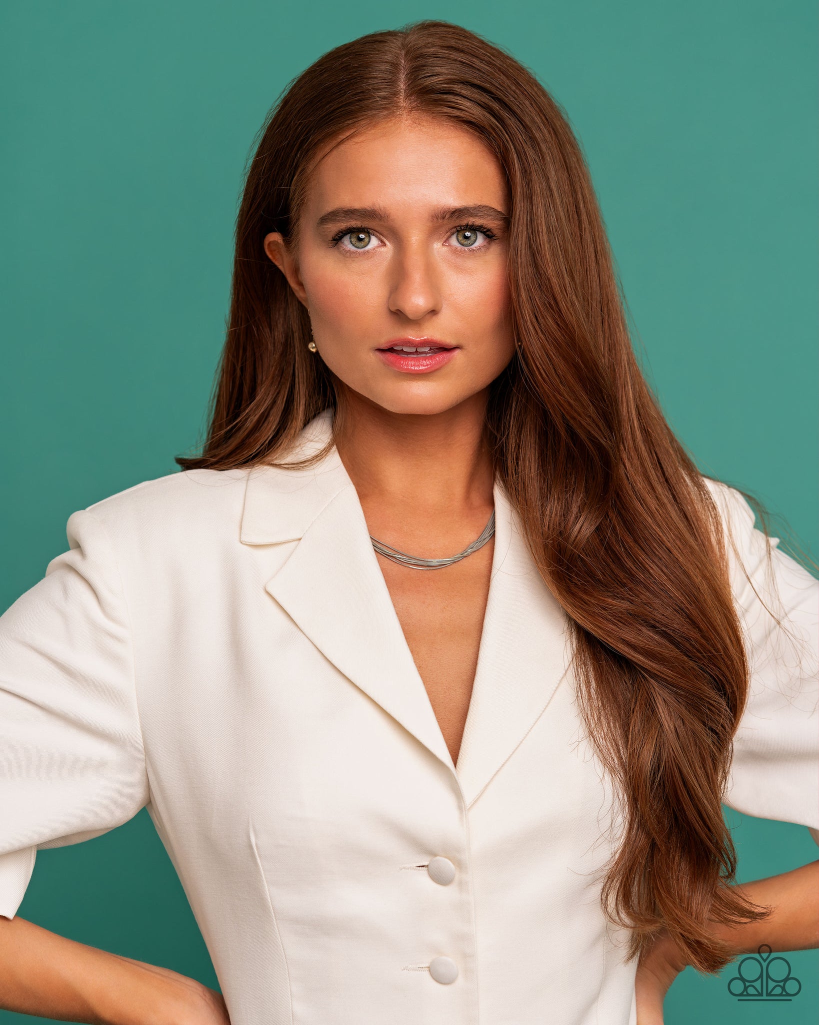 Featuring shiny gold and silver links, six strands of slim snake chains drape across the chest for an edgy mixed metallic finish. Features an adjustable clasp closure.