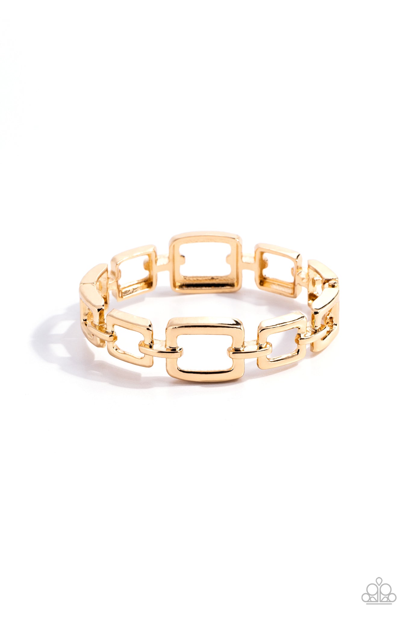 Featuring a high-sheen finish, gold squares in varying sizes and matching gold links interlock across the wrist for an industrial basic staple piece. Features a hinged closure.