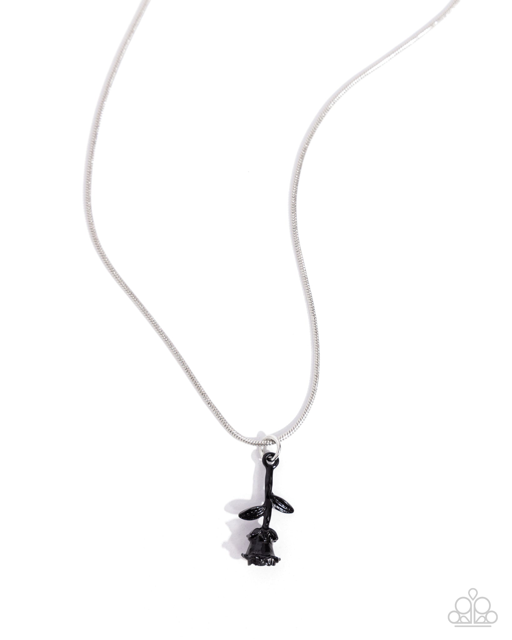 Dipped in black, a rose stem charm glides along a dainty silver chain for a radiantly romantic centerpiece. Features an adjustable clasp closure.