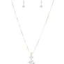 Nestled inside classic gold prongs, two oversized white rhinestones slide along a dainty gold snake chain, creating a dramatic pendant below the collar. Features an adjustable clasp closure.