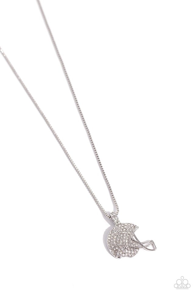 Encrusted in dazzling white rhinestones, a football helmet, complete with a sleek silver face mask, glides along an elongated silver chain for a twinkling touchdown. Features an adjustable clasp closure.
