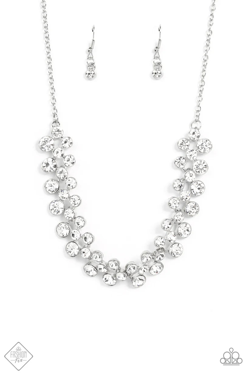 Layers of brilliant white rhinestones in graduating sizes are encased in simple silver frames as they fall from a classic silver chain and delicately link across the collar, creating a dramatic display of swoon-worthy sparkle. Features an adjustable clasp closure.